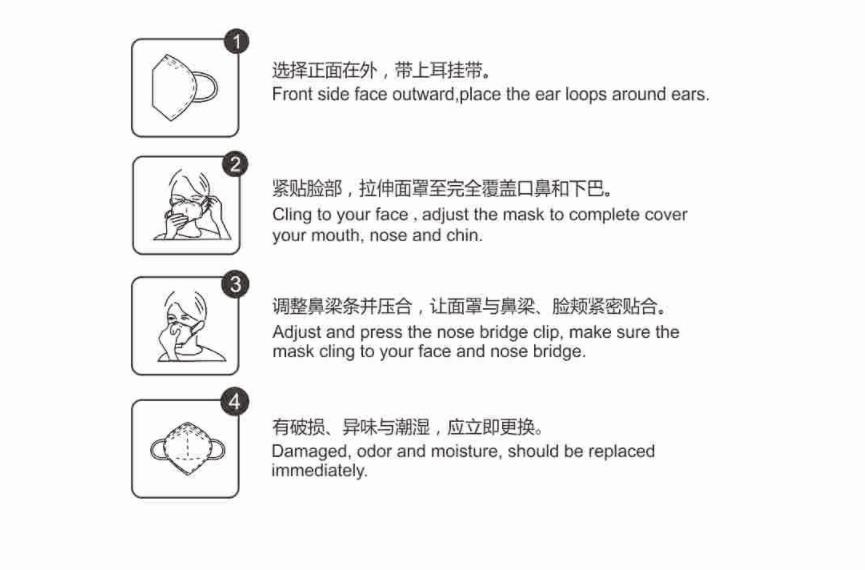 1.Take out the mask and upward sit the nose bridge clip make sure the mask completely cover the nose, mouth and chin