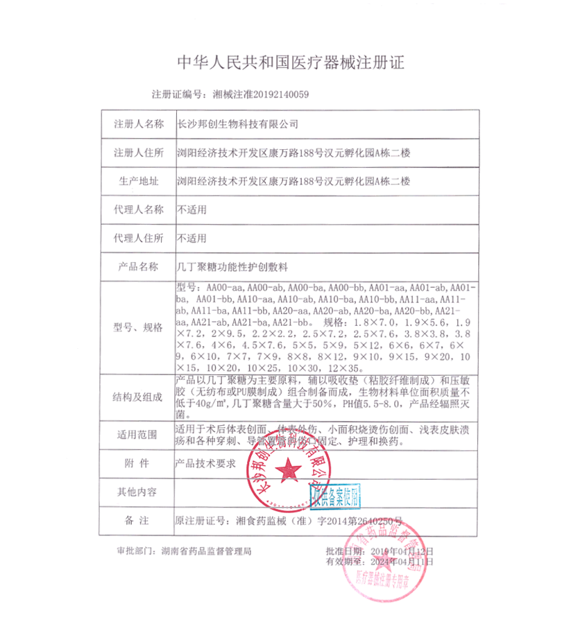 幾丁聚糖功能性護創(chuàng)敷料-注冊證