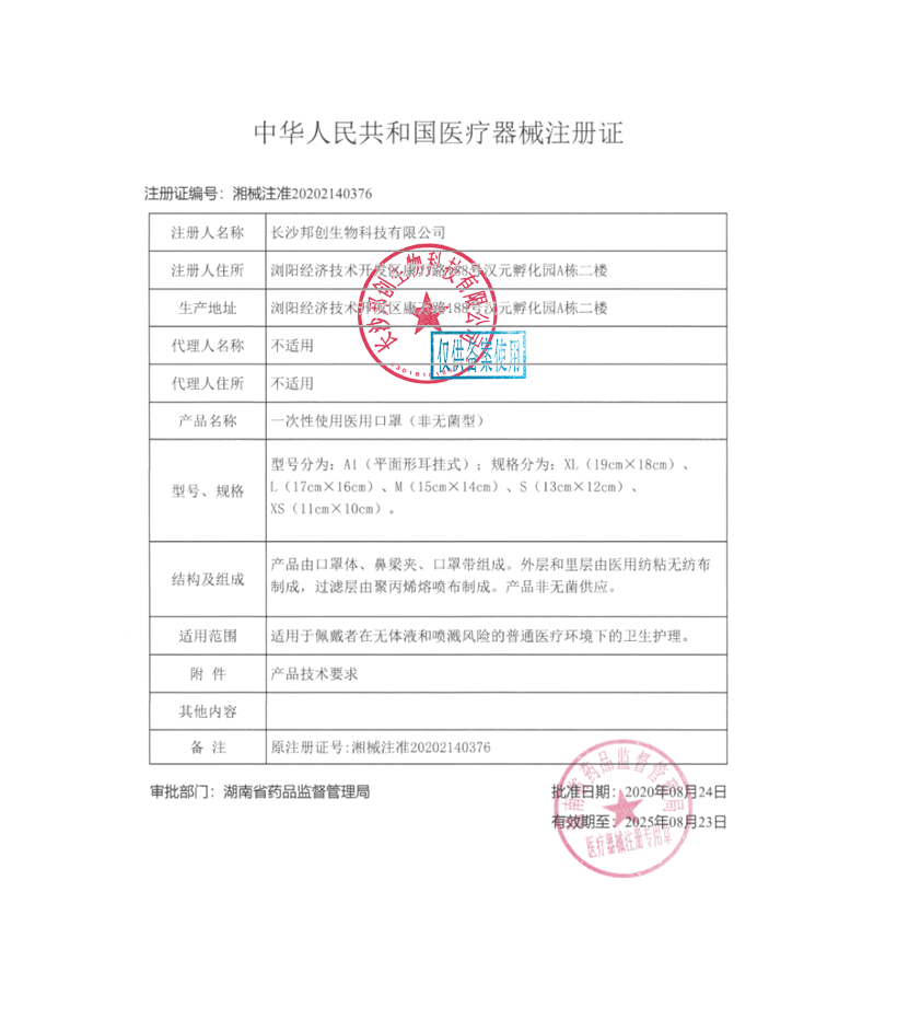 一次性使用醫(yī)用口罩口罩(非無菌)--注冊(cè)證