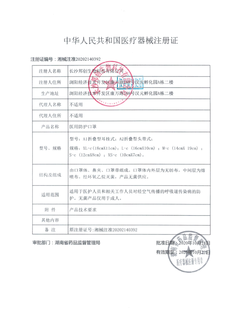 醫(yī)用防護(hù)口罩(無菌型)--注冊證