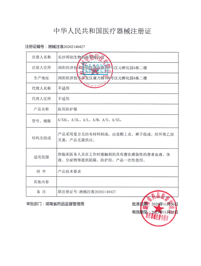 醫(yī)用防護(hù)服(無菌型)--注冊證